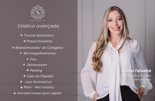 Estética Avançada como botox, preenchimento, lipo de papada, lipo enzimatica entre outros, realizados pela Biomédia Esteta Cintia Teixeira.